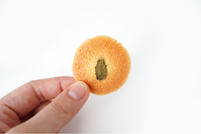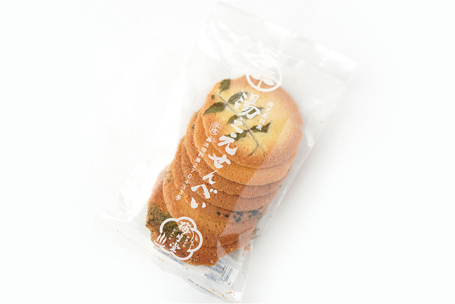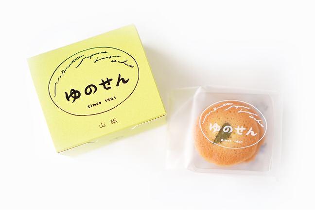 一口サイズのゆのせんはパリッとカリッとした食感が特徴。心地よいいい音がします。そんな山椒のテーマは「オトナのスパイシーなノー・バター 山椒 ラングドシャ」。山椒の葉は、地域のお客さまのお宅、30軒ほどで摘ませていただいたものを使用しているんだそうです。香り高い山椒の香りに、「うん、これこれ!」と懐かしくなります。