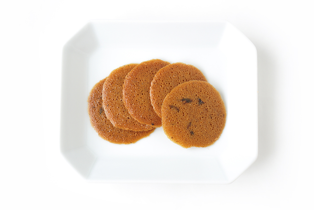 続いて赤のパッケージがおしゃれな珈琲ヴァニラ。こちらのテーマは「オトナのビターでメロウなノー・バター 珈琲ヴァニラ ラングドシャ」。珈琲ヴァニラの特徴はズバリ“ほろ苦”。最近は生地にコーヒーを使ったお菓子も増えてきましたが、ここまでほろ苦い珈琲を感じられるものはなかなかありません。生地の表面にはバニラビーンズ、そして隠し味にはなんとスコッチウィスキーが使われているんだそう! ほろ苦いコクとスモーキーさを感じられる大人な味わいです。