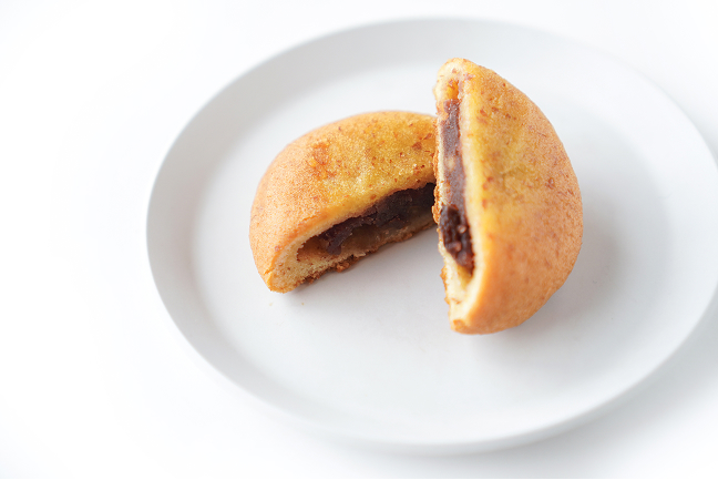 アーモンドプードルをたっぷり使用した香ばしい生地にラムレーズンとくるみを合わせたこしあんが包まれています。