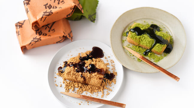 前回に引き続き、滋賀・叶 匠壽庵(かのう しょうじゅあん)のお菓子を紹介します。今回紹介するのは「閼伽井(あかい)」というお菓子。初めてみた時「なんと読むのだろう?」そして、「どういう意味なんだろう?」と、とても気になったお菓子です。閼伽井は羽二重餅を使った餅菓子。黒蜜きなこと抹茶、2種類の味があります。