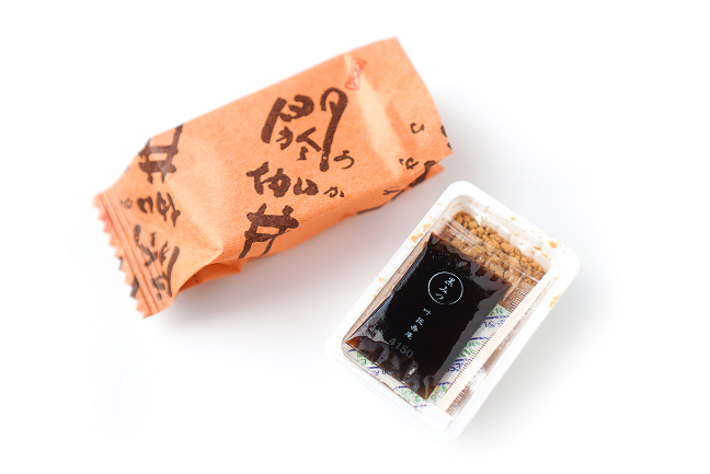まずは、黒蜜きなこから。袋を開けるとようじ、黒蜜、そしてきなこがたっぷりとかかったお餅が出てきます。ようじが付いていることで手軽に食べられるのは嬉しいポイントですよね。