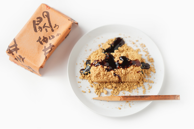 閼伽井の特徴はコシのあるお餅。ようじで刺すときはもちもちと柔らかい感触でありながら、いざ口に入れるとしっかりとした歯応えを感じます。お餅自体のやさしい甘みに香ばしいきなこと黒蜜が絡み合い一口の小さいお餅でありながら口の中に大きな幸せをもたらしてくれます。
