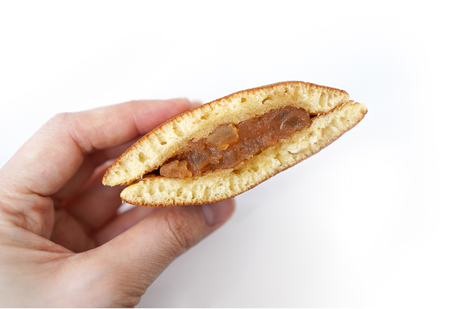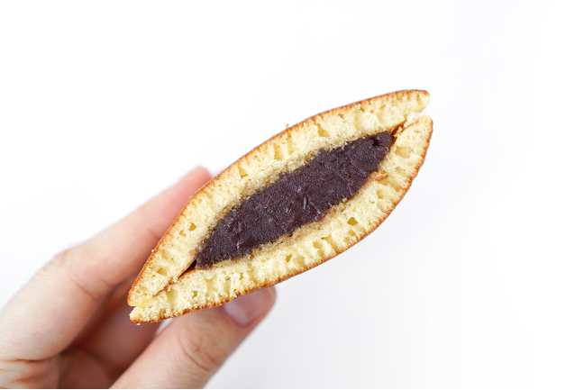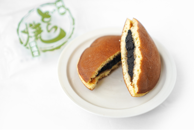 まずは緑のパッケージのごまあん。初めてみつけた時の第一印象は大きくておいしそうなどら焼き!ということ。サイズとふわふわの皮に一目惚れ。あまり深く考えずに購入したのですが、家に帰ってよくよく見ると、抹茶と思っていた緑のパッケージは胡麻ということが判明しました……! 普段はどの味にしようかと悩みすぎてしまうのですが、たまにはこういう意外な出会いも大事だな、と思ったり。